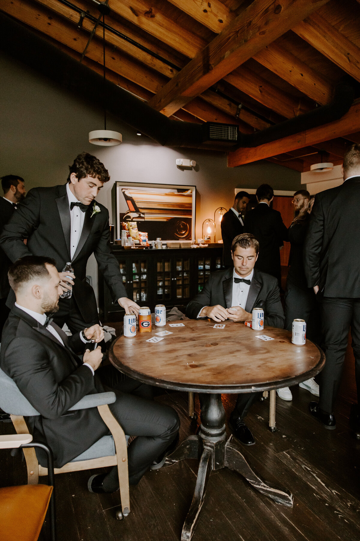 Although it's the perfect place for the Groom and his Groomsmen to get ready for the wedding we realize they may not take as long as the girls. So we have equipped this space with all of the toys from big screen TV's, a Pool Table, Playstation, Poker Table, Media Room Recliners, to a Lunch Buffet and a Full Bathroom with Shower. This room is the perfect getaway for good "Guy Time" while the girls are getting ready right across the lake.